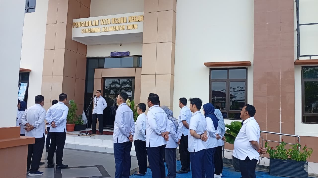 Samarinda, 20 Oktober 2025. Pelaksanaan Apel Sore dipimpin oleh Hakim PTUN Samarinda, Hidayat Pratama Putra, S.H., M.H. amanatnya beliau menyampaikan untuk selalu mentaati Perma 7, 8, 9 Tahun 2016, PP 94 Tahun 2021, Kode Etik Hakim, Panitera, Juru Sita dan Kode Etik ASN.